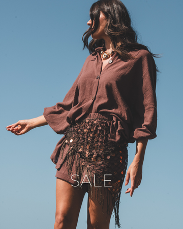 Saia Boho com Franjas e Brilhos Marrom